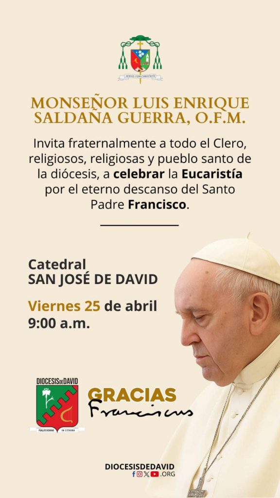 La Diócesis de David invita a misa por el eterno descanso del Papa Francisco