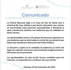 El profesor Diógenes Sánchez, dirigente de ASOPROF, fue detenido durante una audiencia que se realizaba en la Casa de Paz...