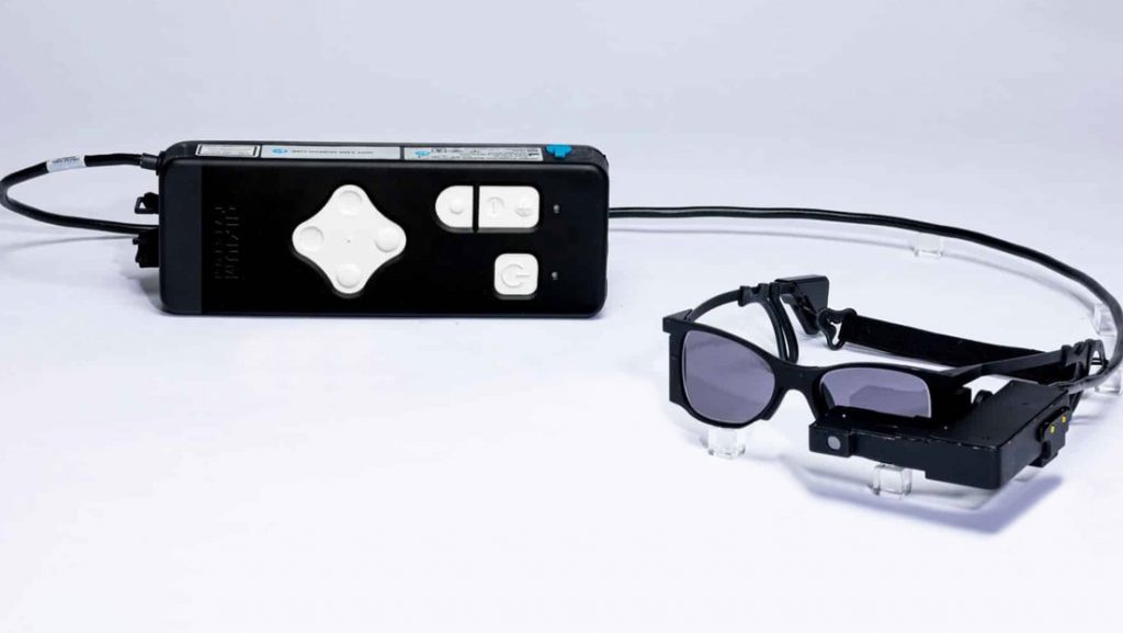 Además del implante, el sistema PRIMA incluye unas gafas especiales con cámara y sistema de proyección incorporado y un procesador de bolsillo que procesa la imagen para lograr mayor claridad y ampliación.